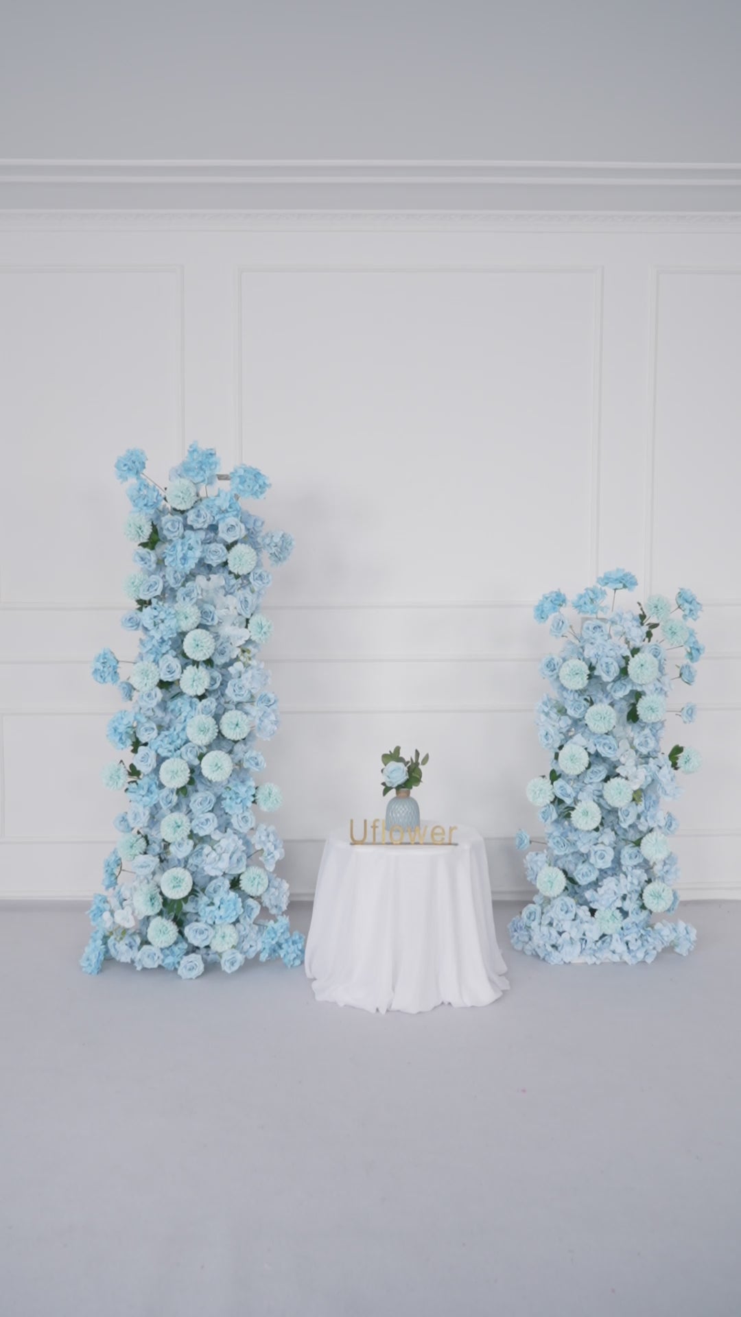 Uflower Blue Rose Orchid Pompoms Wedding Background Arch KT Board Decorative Flower SET80084
