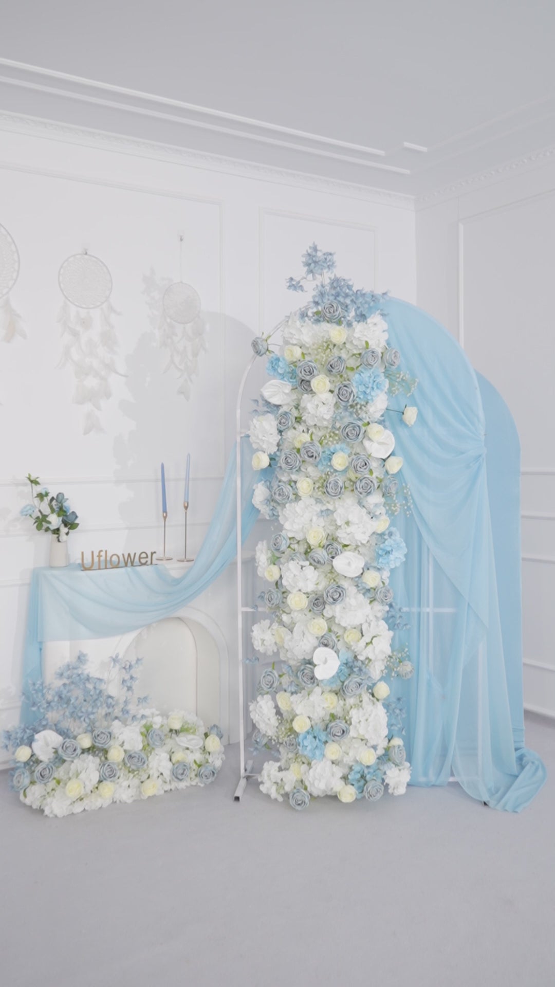 Uflower Blue White Flower Wedding Backdrop Arch Floral Arrangement SET80121
