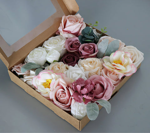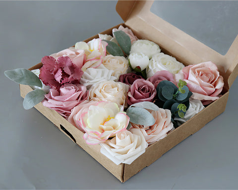 Simulated pink and white mixed rose silk fabric aircraft box DIY interior decoration - Uflower