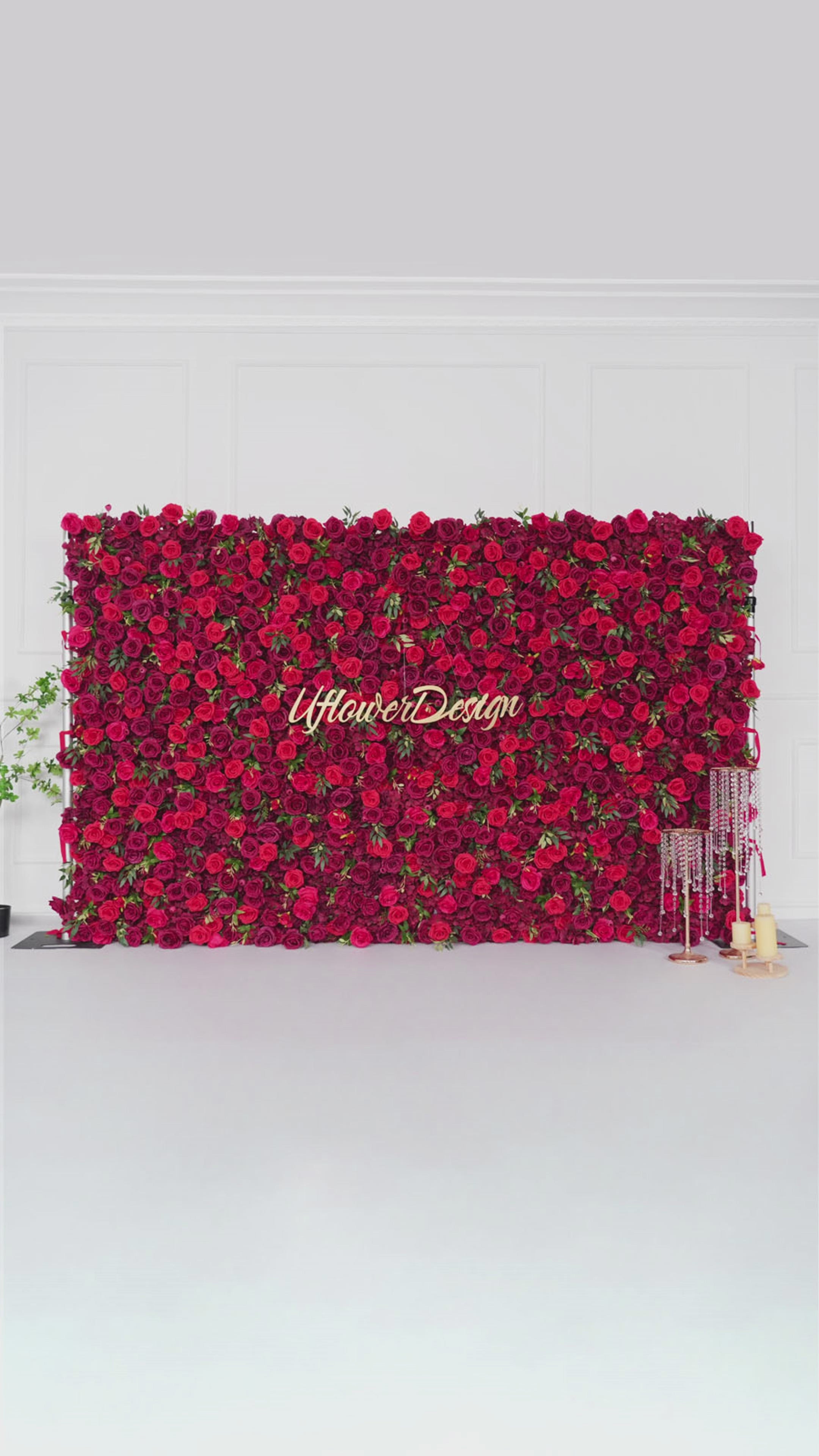 Uflower Artificial Red Rose Wall Wedding Backdrop Decor SET80118