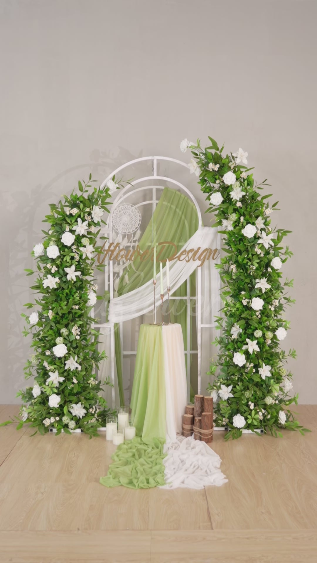 Uflower White Green Floral Arrangement Horn Arch Wedding Backdrop Props SET80098-01