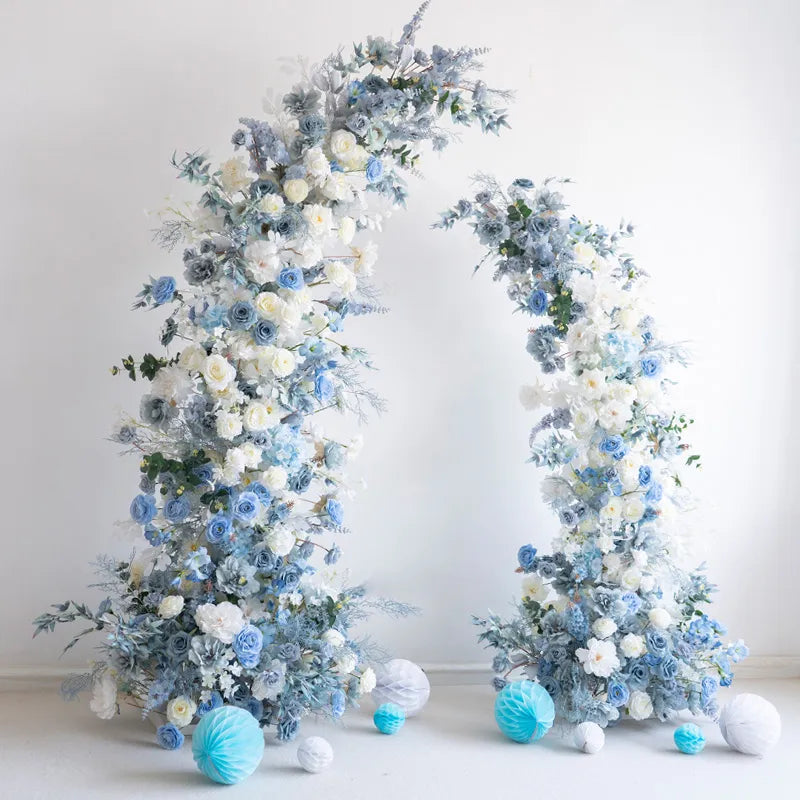 Uflower Blue Floral Arrangement Horn Arch Wedding Backdrop Props SET80135