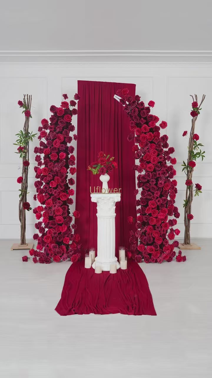 Uflower Red Rose Floral Horn Arch Wedding Party Backdrop Decor SET80204