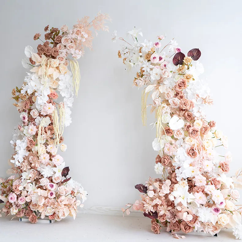 Uflower Pink White Horn Arch Floral Arrangement Wedding Backdrop Props SET80103