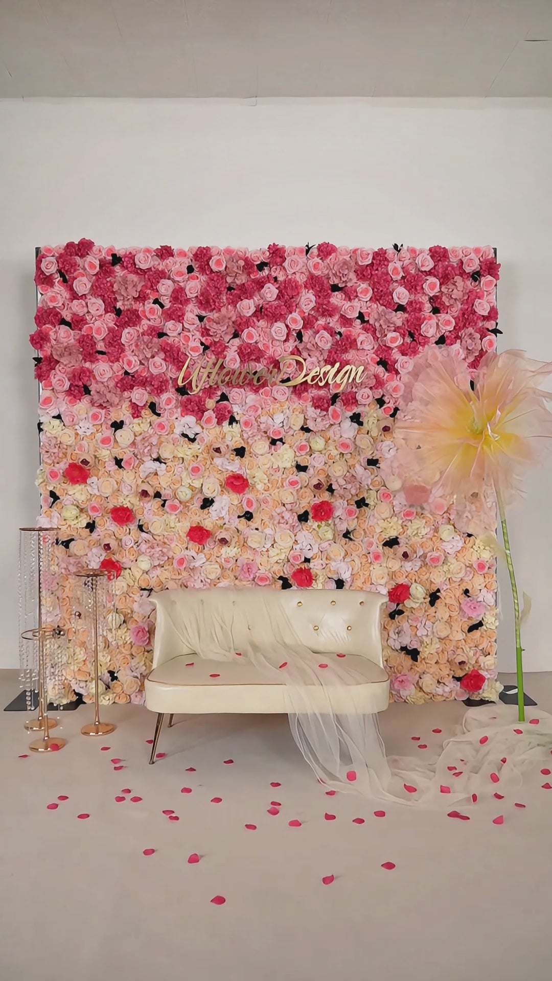 Uflower Rose Pink Gradient Flower Wall SET80046 - Uflower