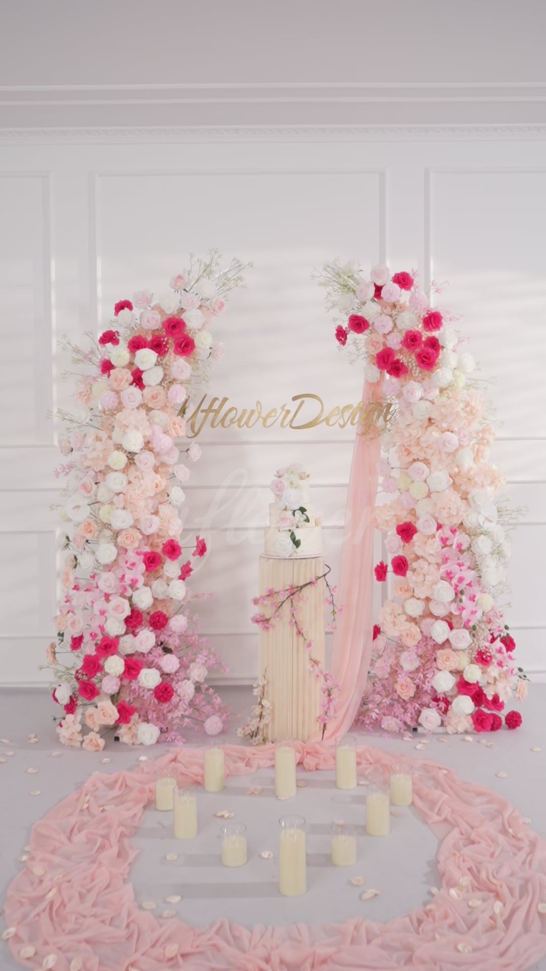 Uflower Pink White Floral Horn Arch Wedding Party Backdrop Decor SET80103-01