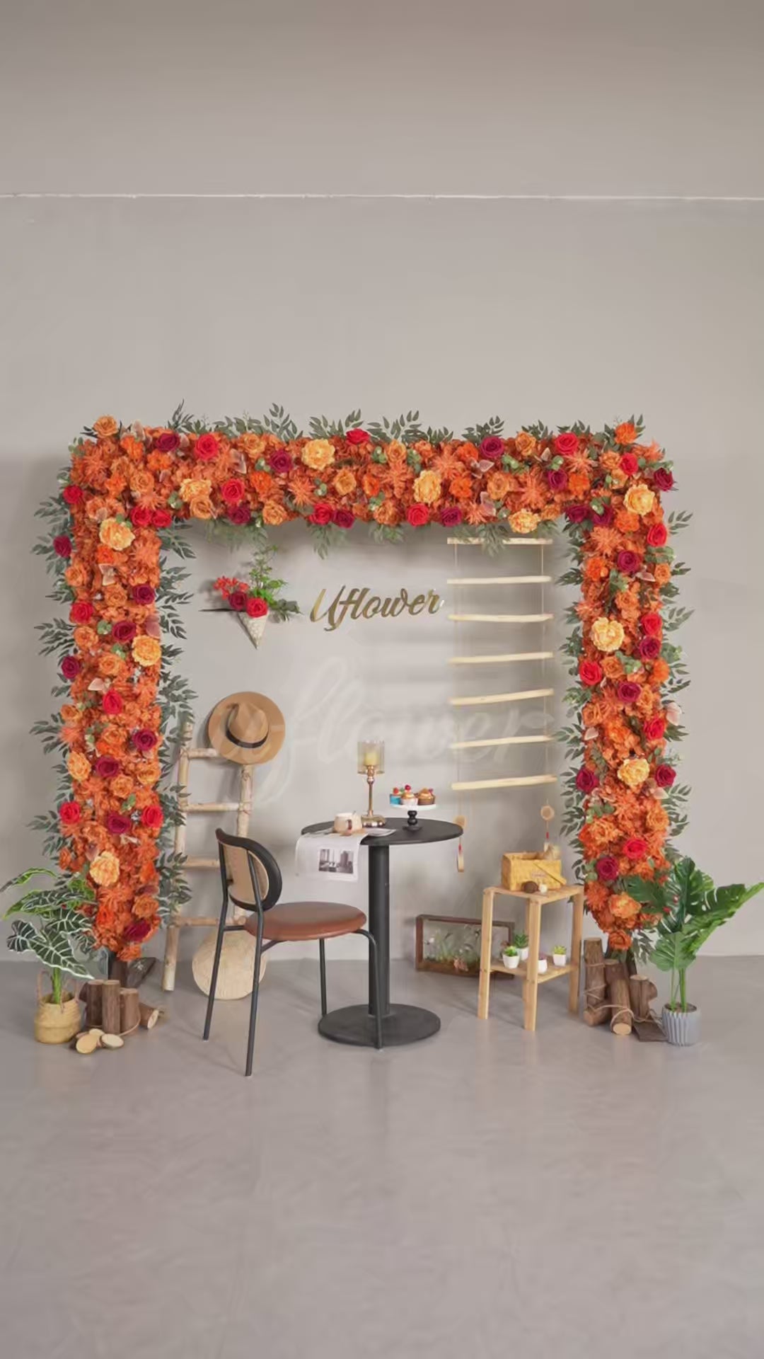Uflower Orange Red Rose Floral Square Arch Wedding Party Ceremony Backdrop Decor SET80194