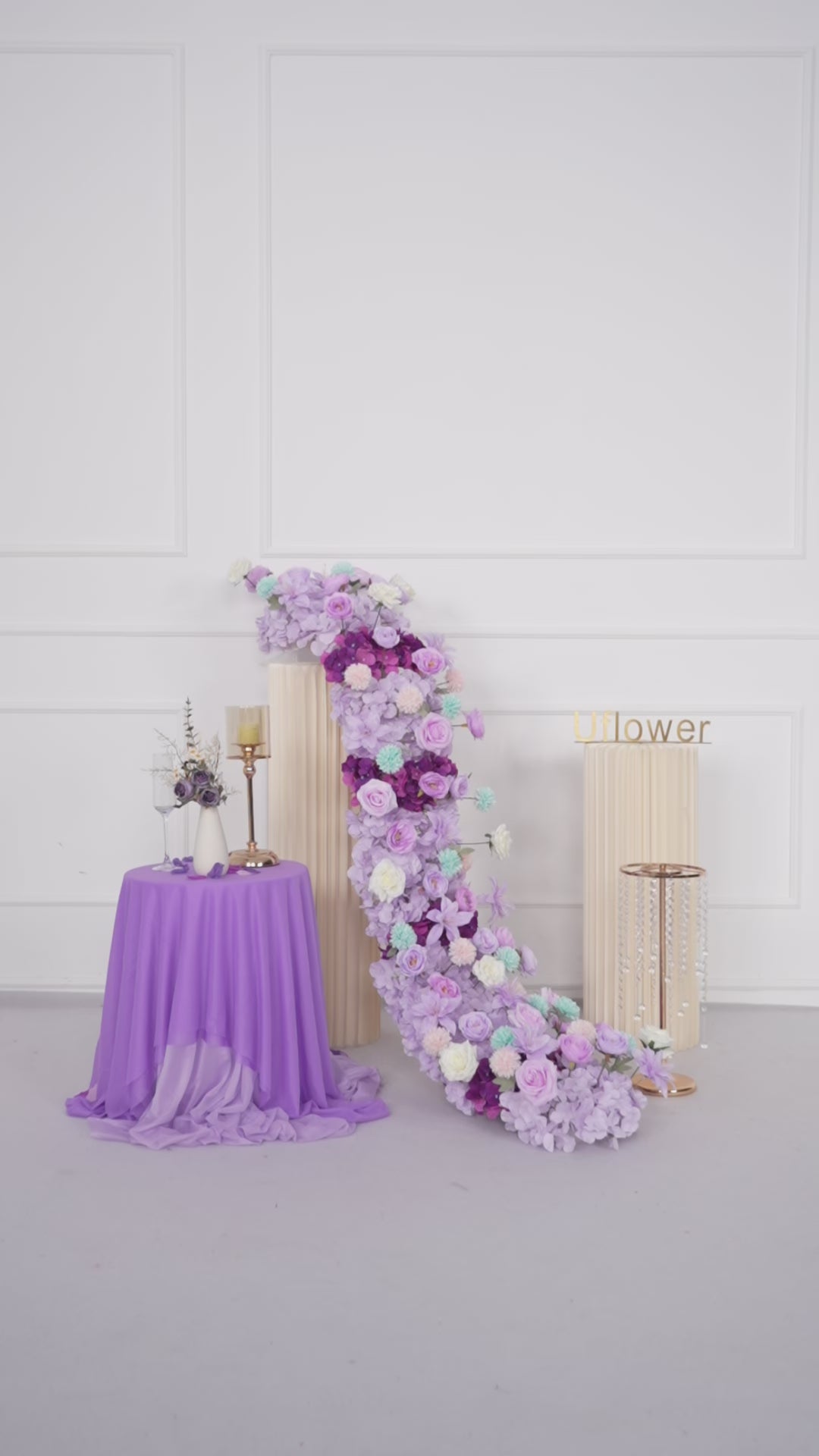 Uflower Purple Flower Row Sofa Table Runner Floor Flower Arrangement MC80122-01 - Uflower