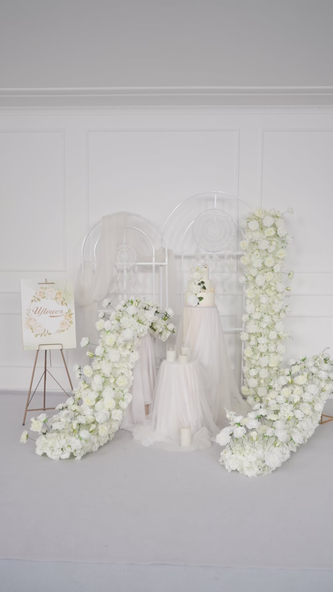 Uflower White Sofa Table Runner Floor Flower Arrangement MC80087-04