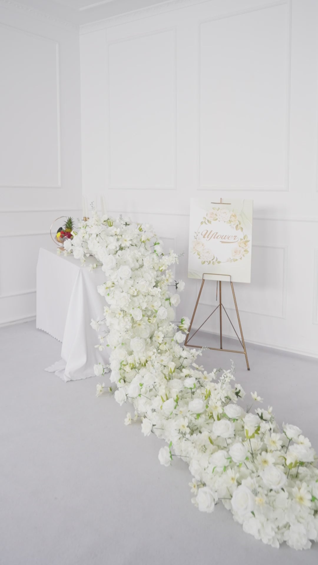 Uflower White Rose Sofa Table Runner Floor Flower Arrangement SET80099