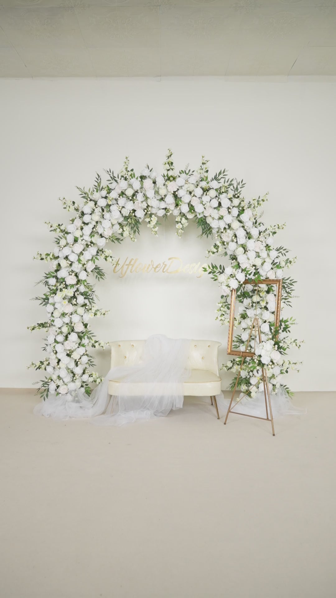 Uflower White Rose With Green Wedding Round Arch Decor SET80058